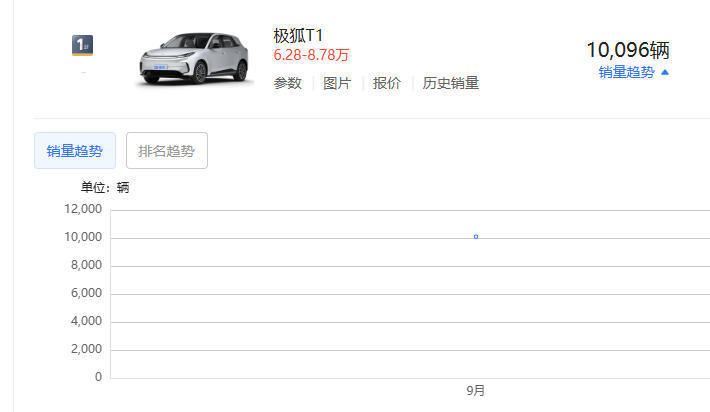 想到了极狐T1会火,但没想到它首月销量就实现了破万!来自第三方平台公布的零售销量数据显示,极狐T1在9月份取得了10096辆的零售销量,不仅一举进入月销万辆俱乐部,而且也成为了北汽极狐最为畅销的车型,成为极狐的销量砥柱。